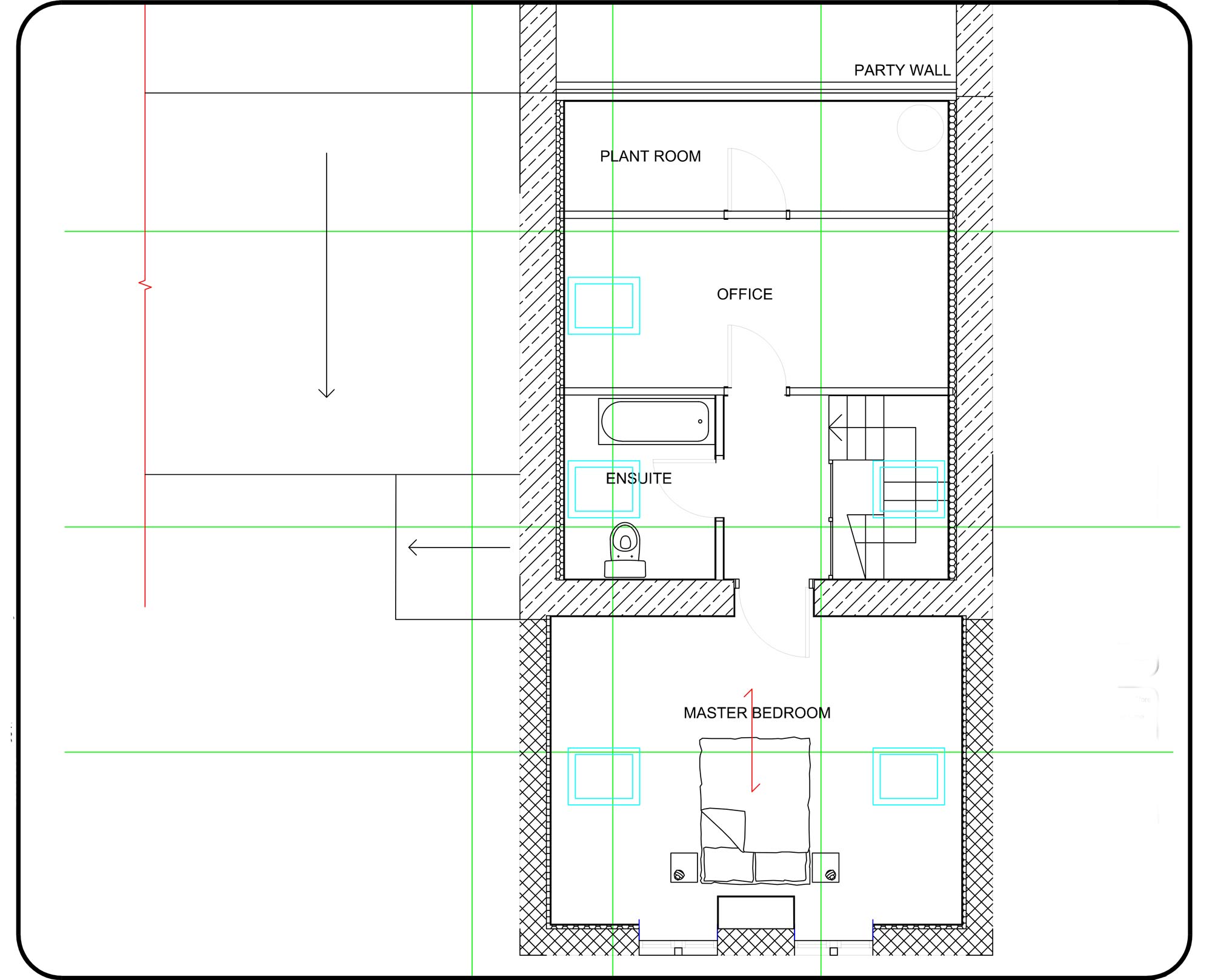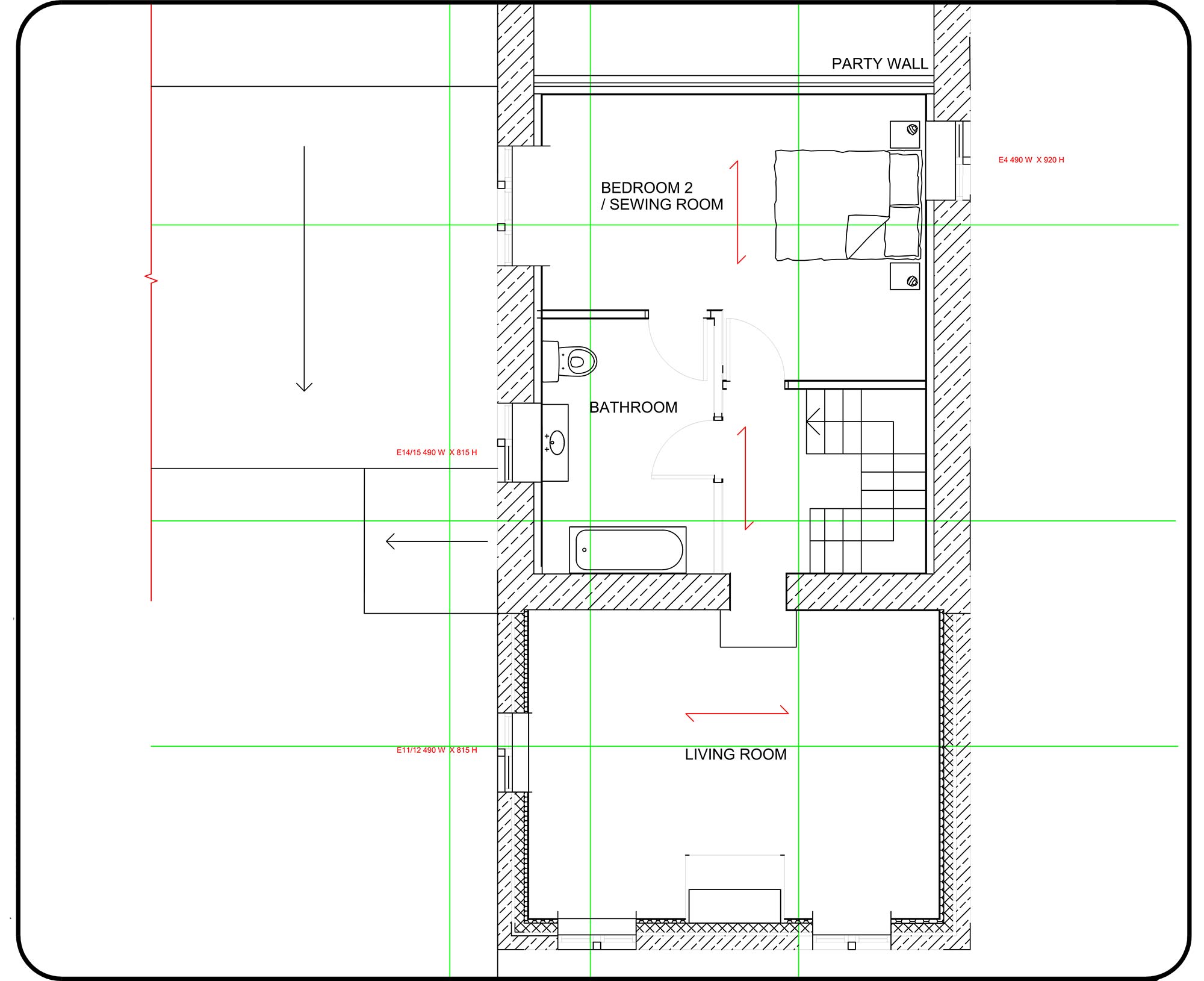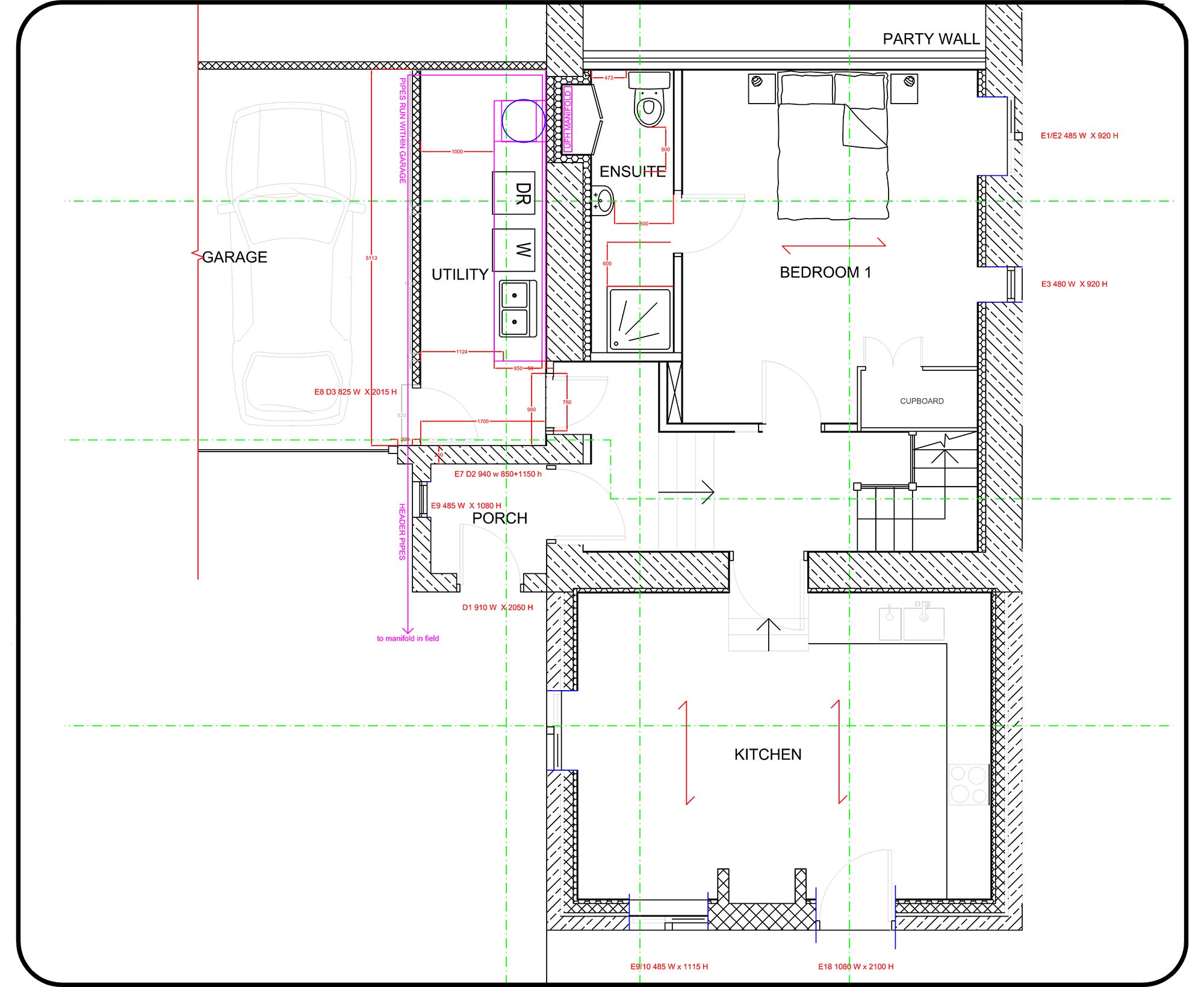 Thermal bridging was avoided by surrounding the heated slab with an insulation upstand to meet the wall insulation – which in turn meets the roof insulation. There was also a thermal bridge where the old gable end wall, now an internal partition wall, cut across the internal insulation to join the external wall. The impact of this thermal bridge was reduced by continuing the internal wall insulation around the corner and about 400mm inwards, along both sides of this partition wall.
