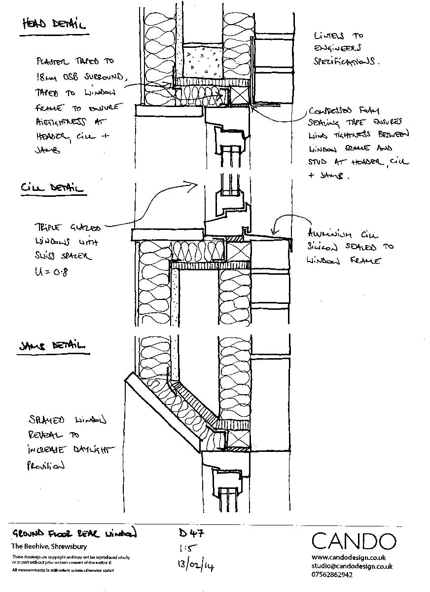 Bespoke timber window: Triple glazed, argon-filled window from Manleys Joinery, with warm edge spacer. U-value: 0.80 W/m2K