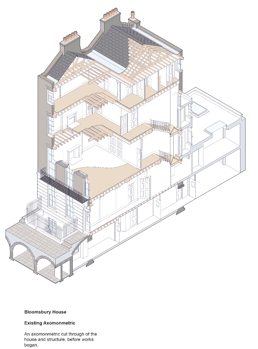 Inside however, most of the structure was in good condition. “There was a phenomenal amount of timber, it looked like shipbuilding,” Bob Prewett recalls. “There are effectively massive trees making the main beams with a six metre span from party wall to party wall, with cross joists notched into those, supporting the floors, with ceiling joists below.