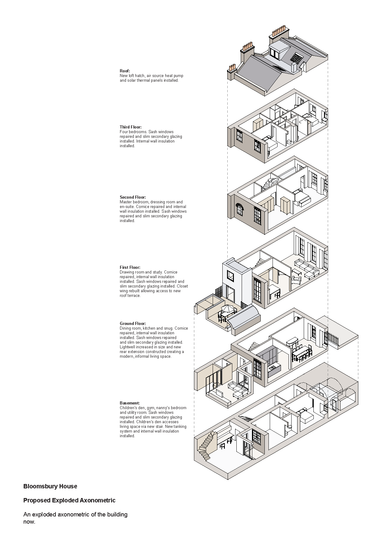 When Bob Prewett of Prewett Bizley Architects was approached for help with turning this five-storey Georgian house in Bloomsbury back from an office building into a family home, and an Enerphit-standard home at that, he knew it would not be straightforward. But he also believed that if they could achieve Enerphit, the passive house standard for retrofit, while retaining all the elegance and historic value of the building, then an important precedent would have been set.