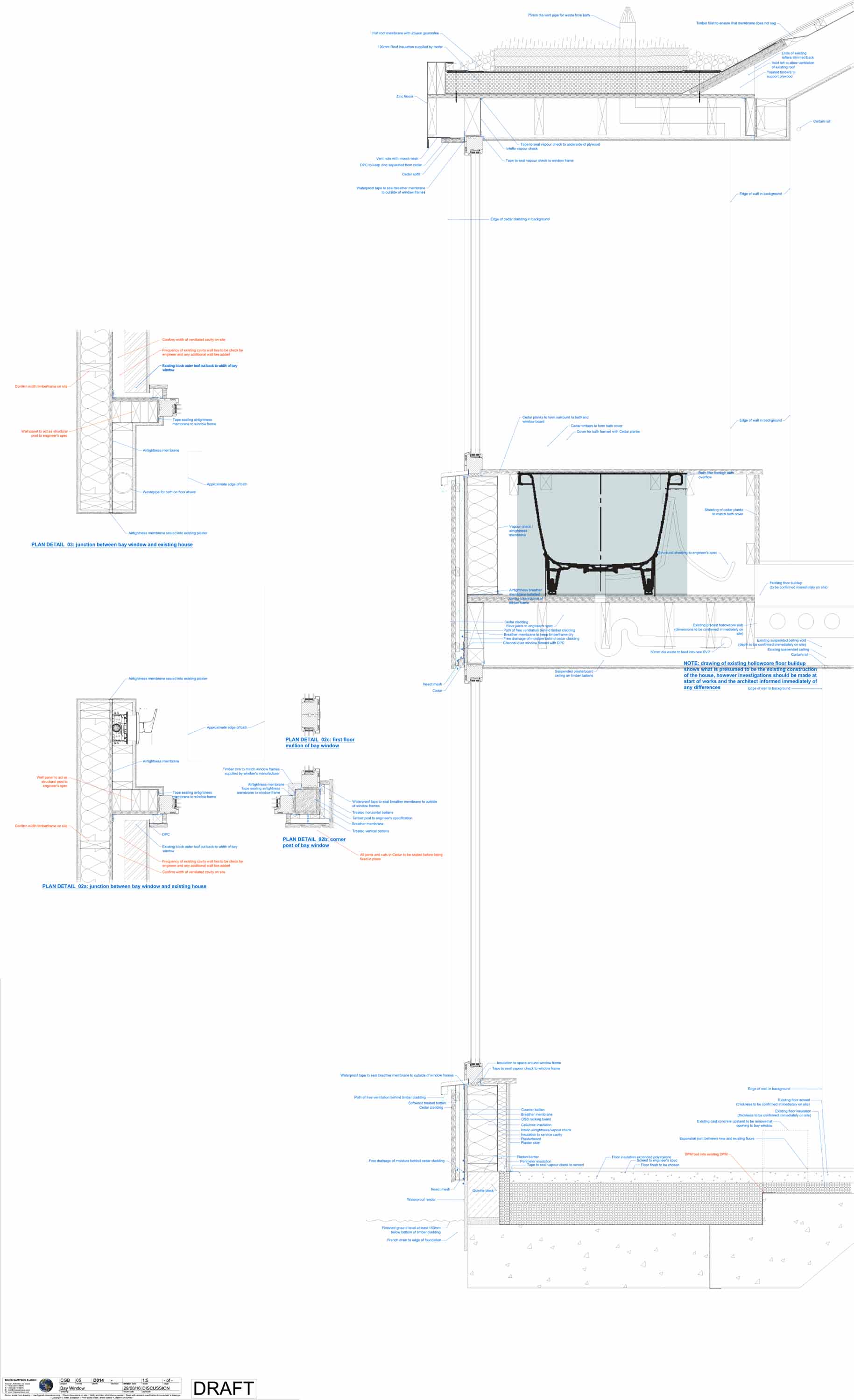 6 the final parts of the roof build-up, prior to installing the zinc roof cladding, are 20mm softwood treated boards, followed below by a ventilated cavity and Icopal breather membrane.