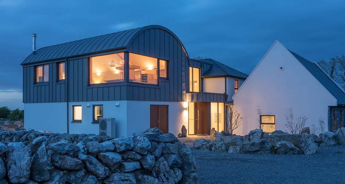 When Amanda and Keith Horan wanted to extend their existing, partially upgraded, cottage near Kinvara, County Galway, they knew they wanted a sustainable building from day one, but their goals were not going to be easy to satisfy. They needed a family home, workspace and a yoga studio, and had three buildings to integrate into the plan — the old cottage, a nine-year old extension, and a large new extension that would be built to a passive house specification.