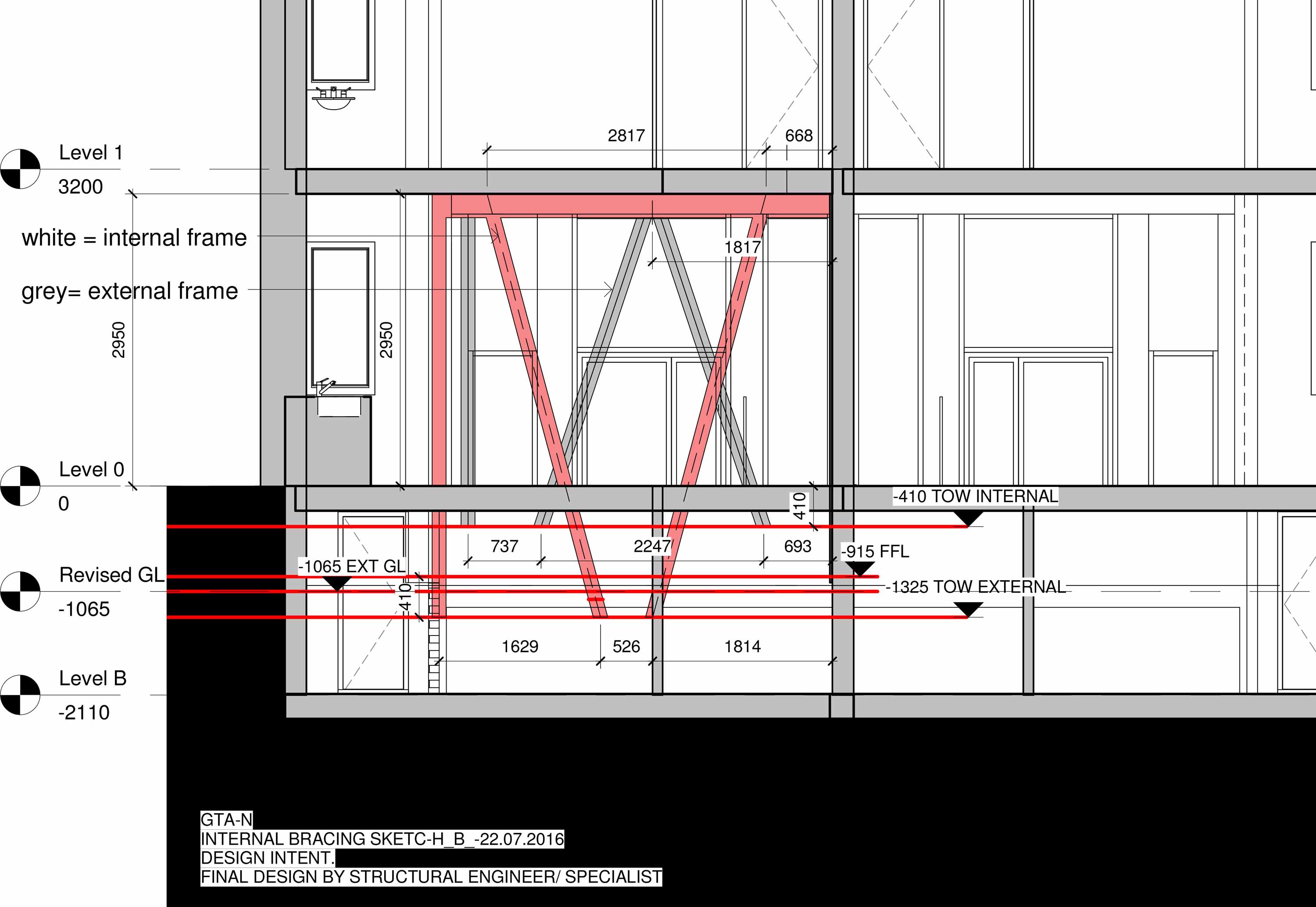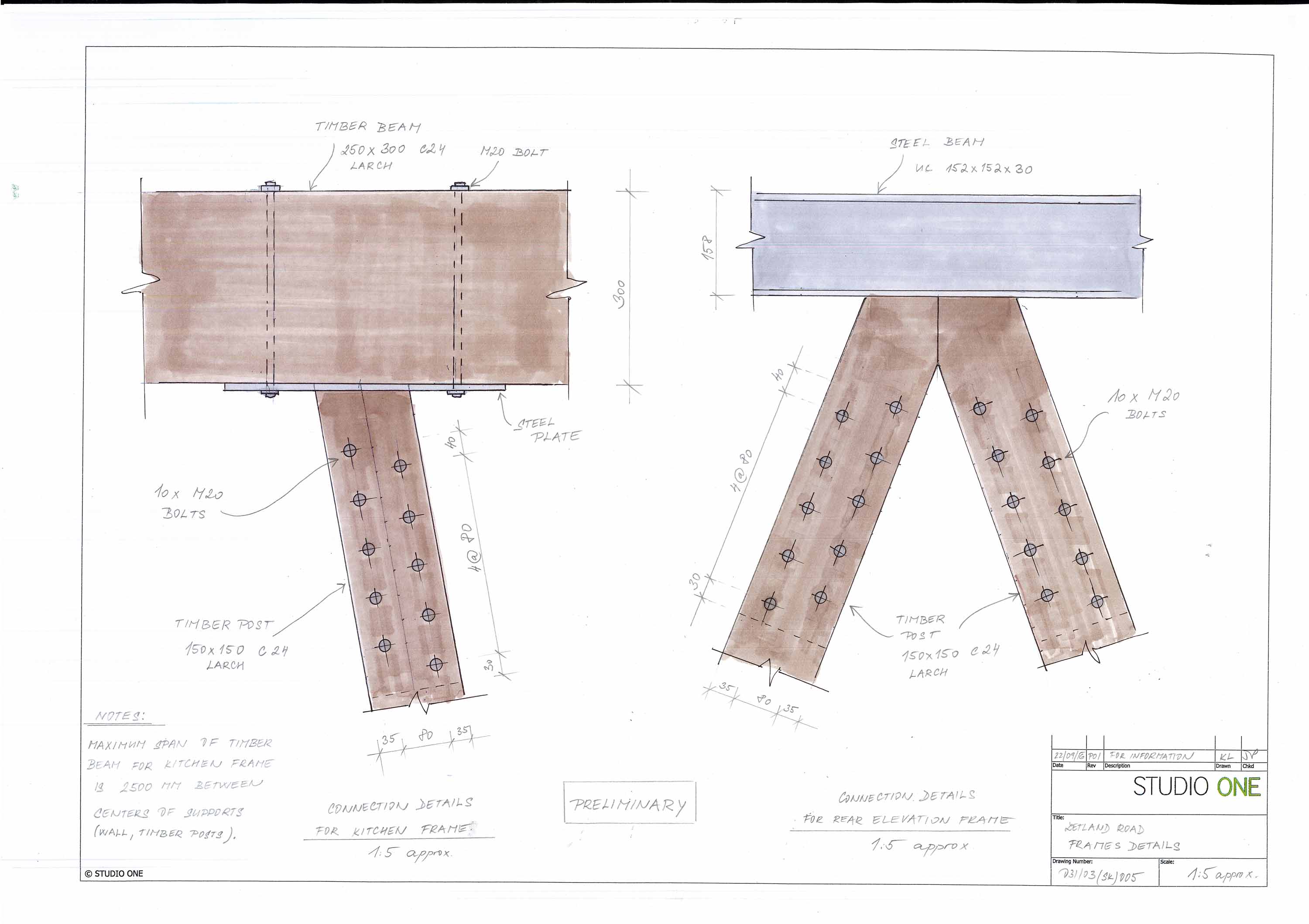 (above) Isokorb thermal breaks at both ends of a steel beam, to prevent thermal bridging where the timber A-frame is to adjoin the steel.