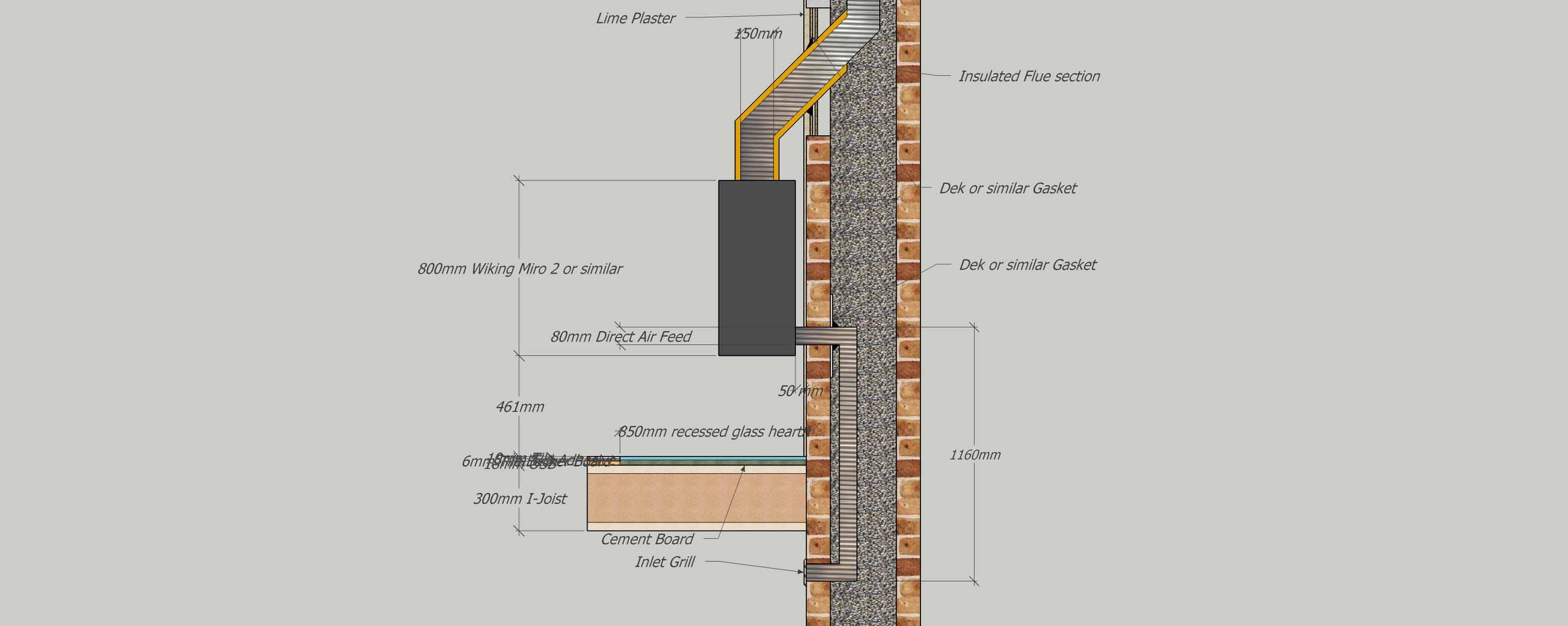 After: 2kW electric post heater on Paul Novus 300 MVHR system, DiBT accredited Wiking log burning stove. Domestic hot water electrically heated in Mixergy 300L tank. Electricity fed from PV on roof.