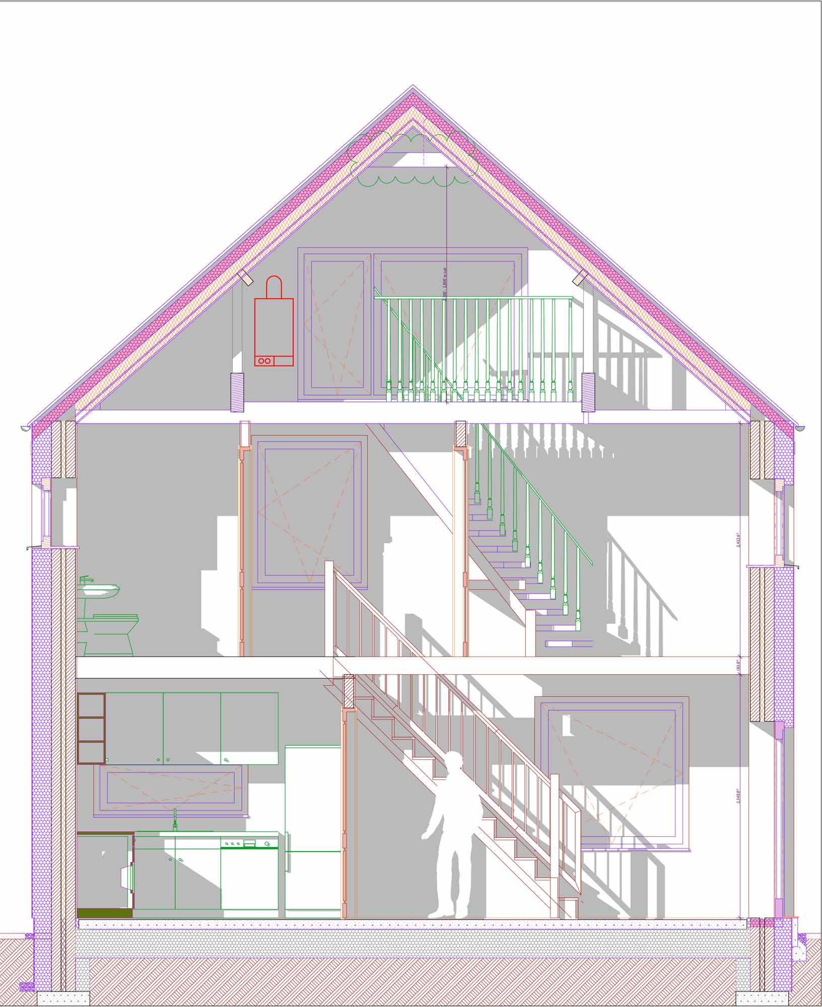 The original house actually had very little south glazing — there was just one small window in the gable end, as is standard with semis like this regardless of their orientation. The original plan was for a new large attic window, plus a second new south-facing window at ground floor level. But Chris re-thought this.