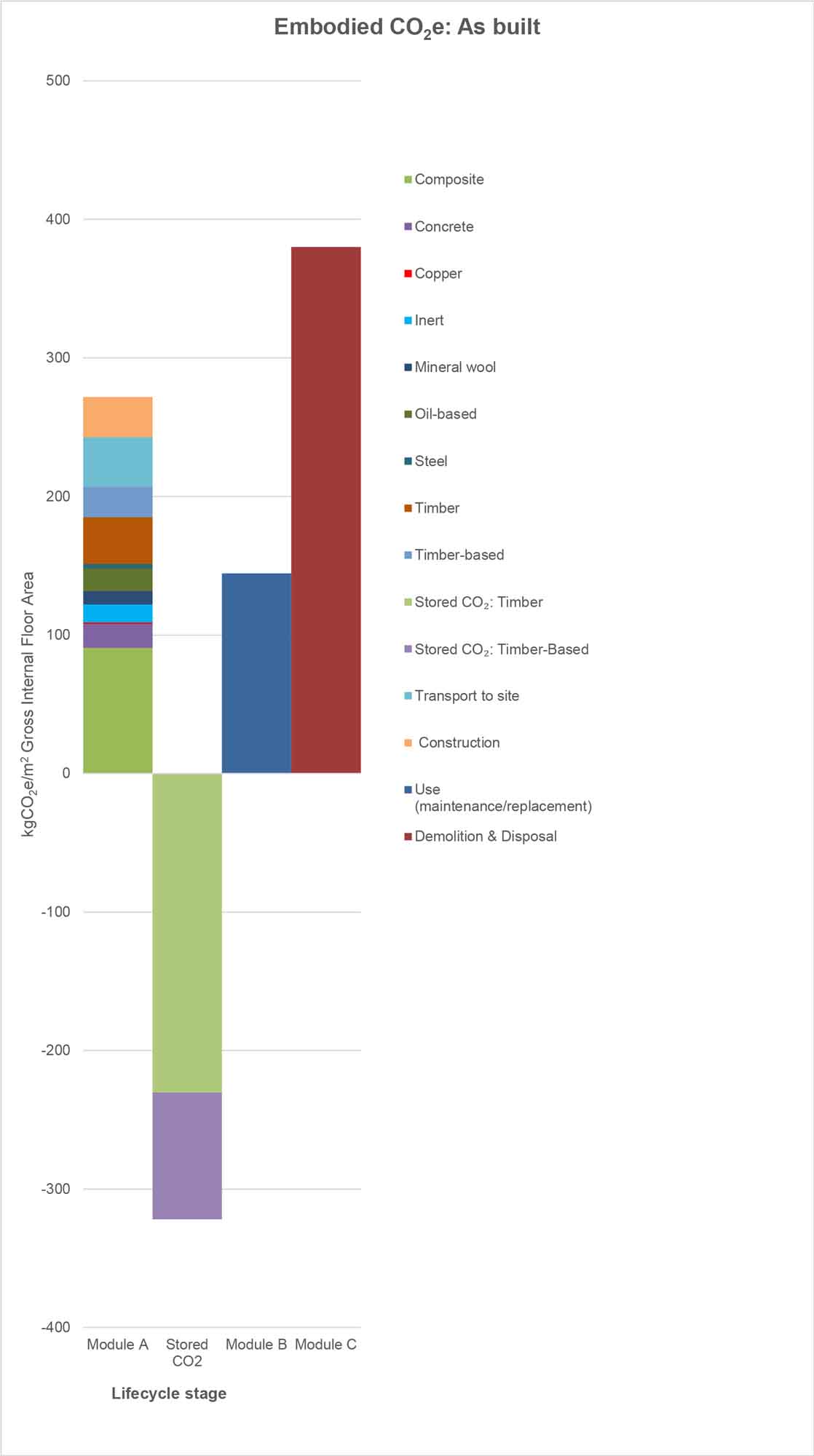 As per the RIBA & RIAI 2030 Climate Challenge targets, external works were calculated but not included in the main totals. If included, they would have added an estimated 3.3 tonnes of embodied CO2e.