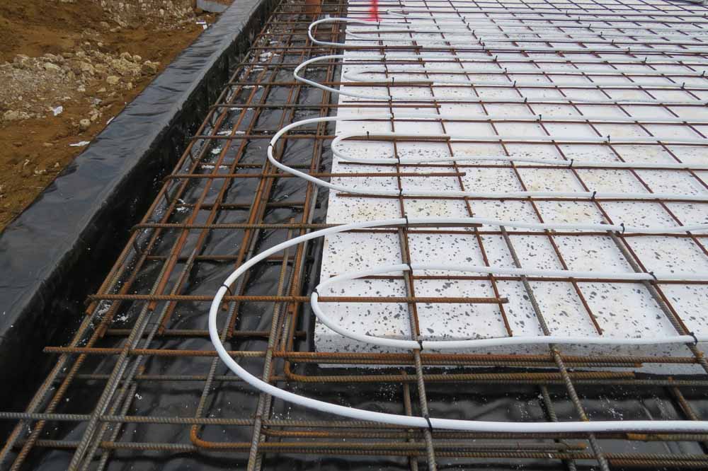 Installation of underfloor heating pipework, DPM and reinforced steel mesh, to be followed by concrete slab