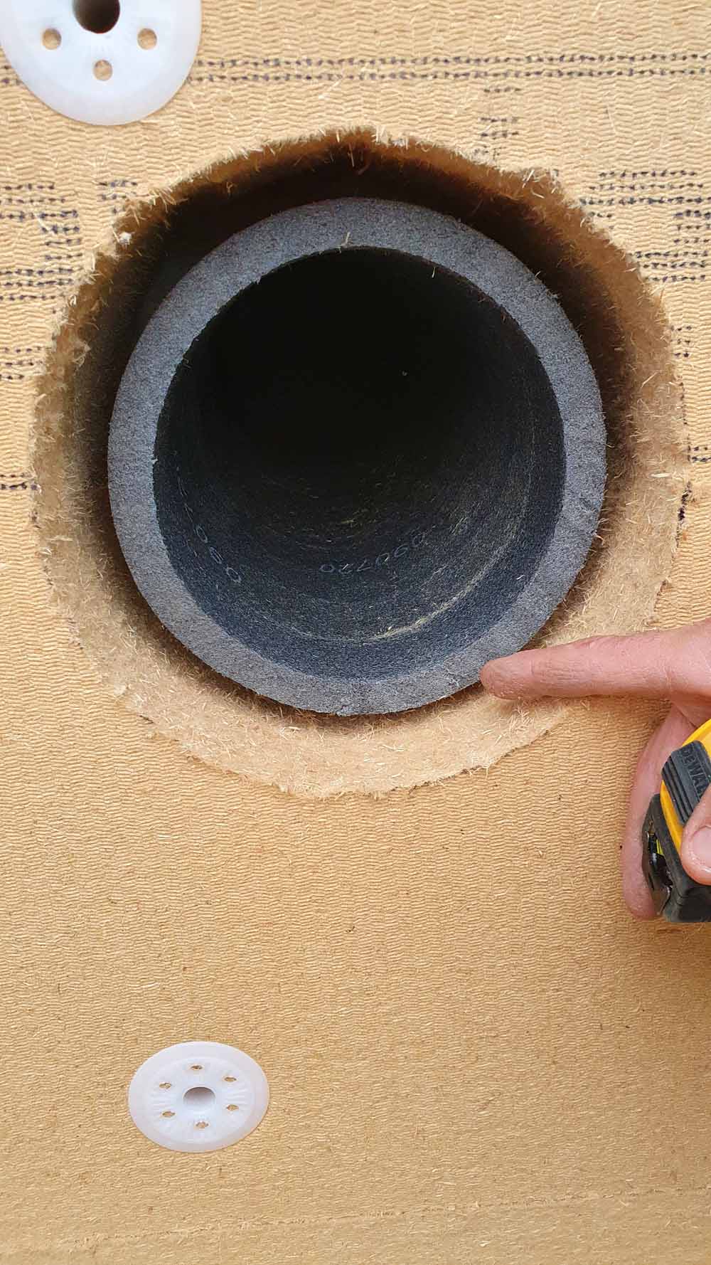 Plywood stop plate installed at end of woodfire insulation/ thermal line