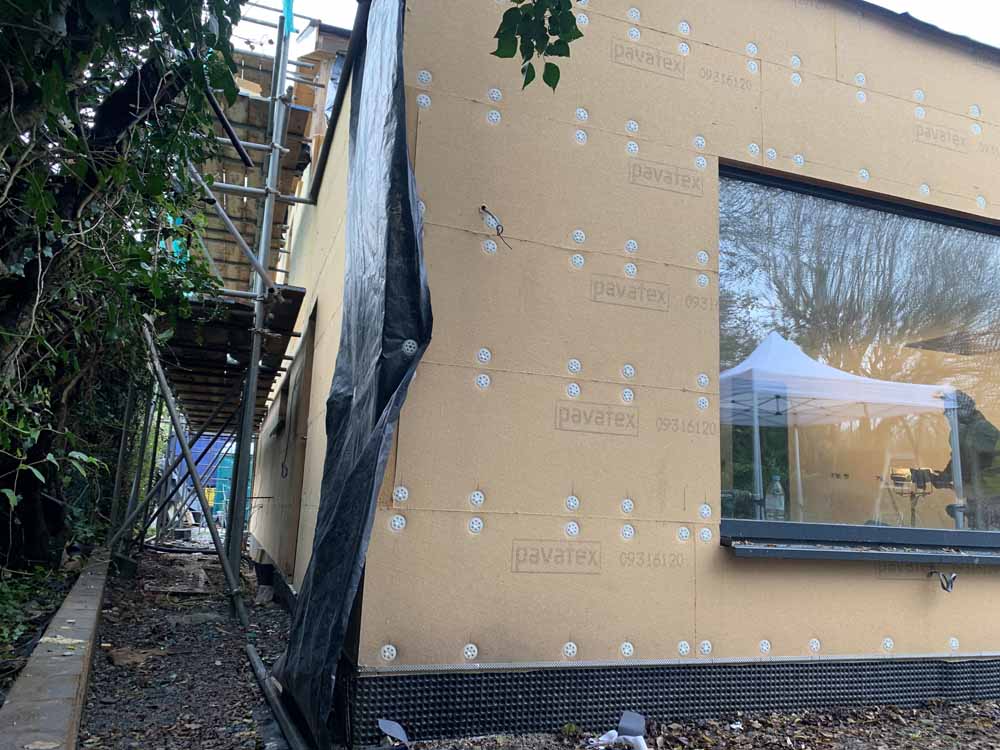 External woodfibre insulation installed on the rear extension around the picture window