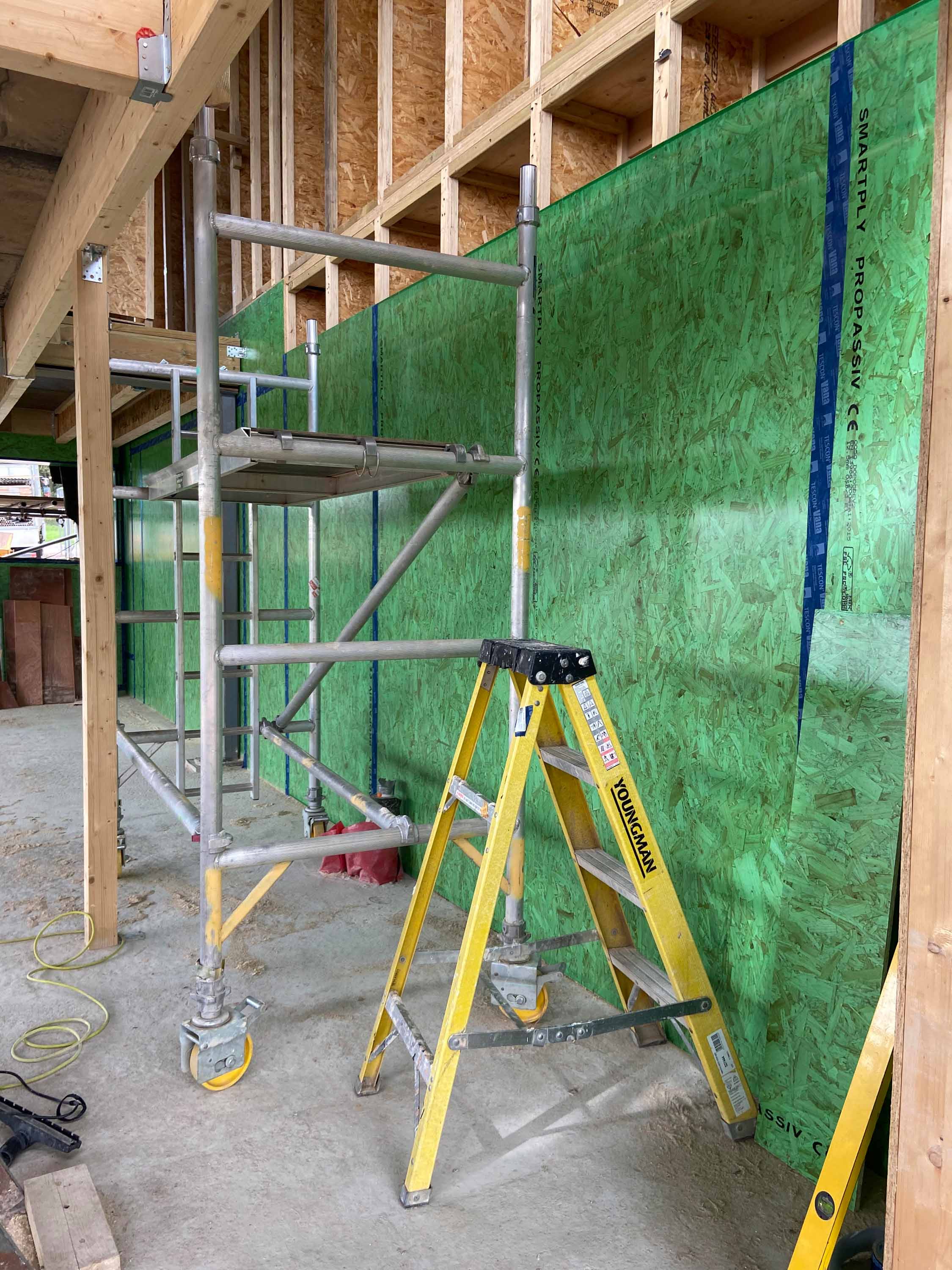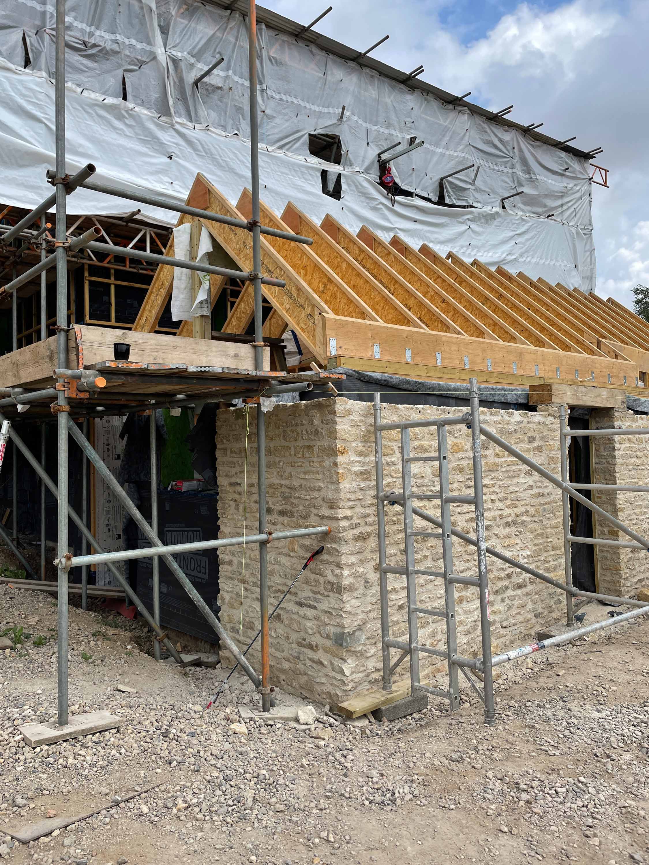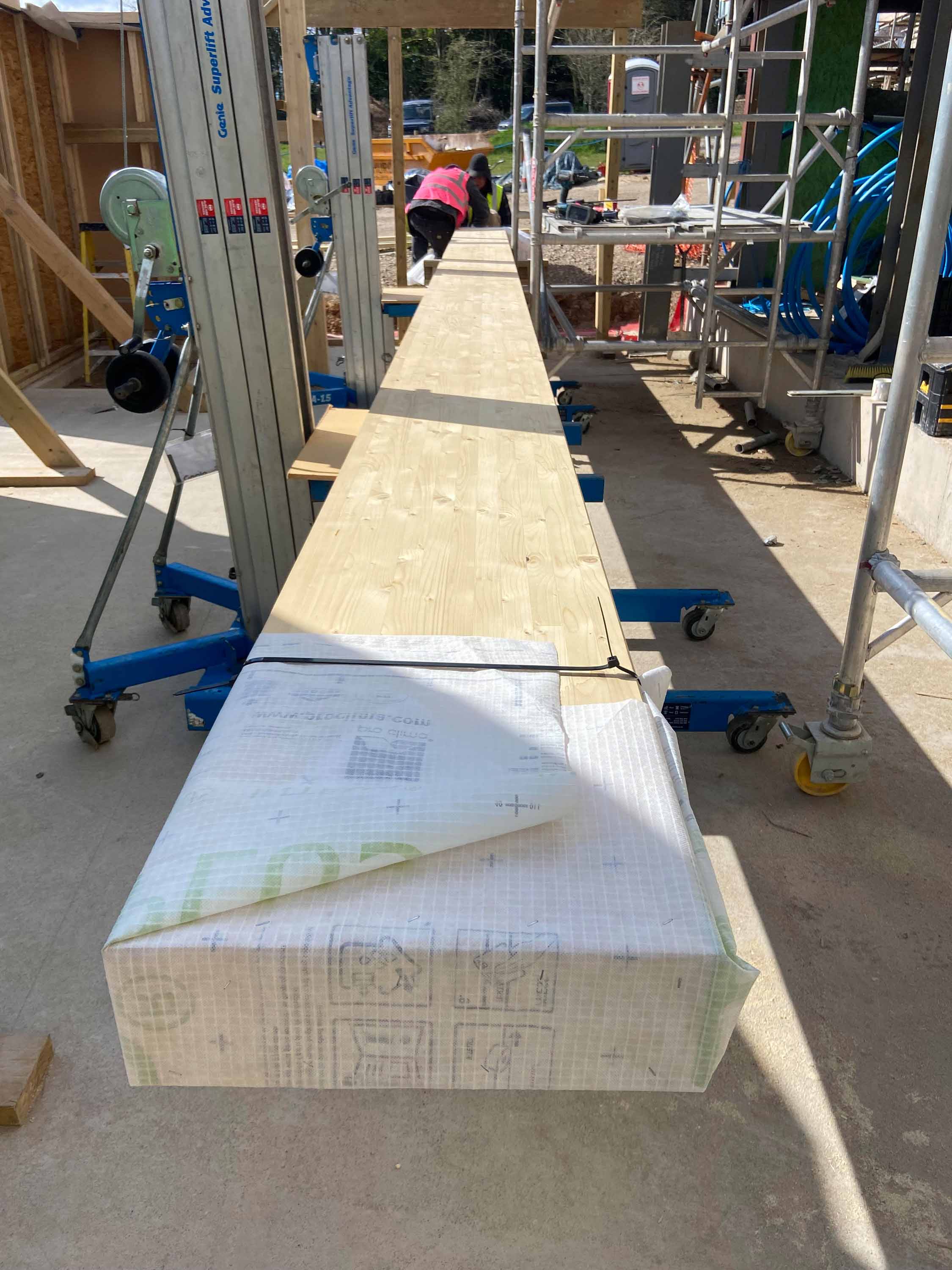 Care was taken to ensure airtightness where the roof timbers connected with the walls, such as an Intello airtight sock on the ridge beam