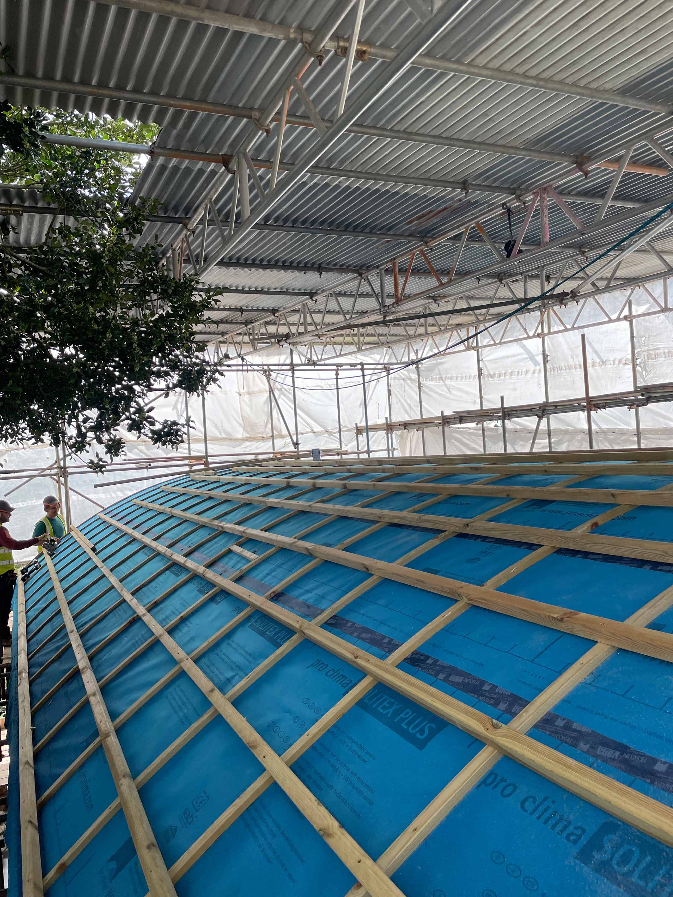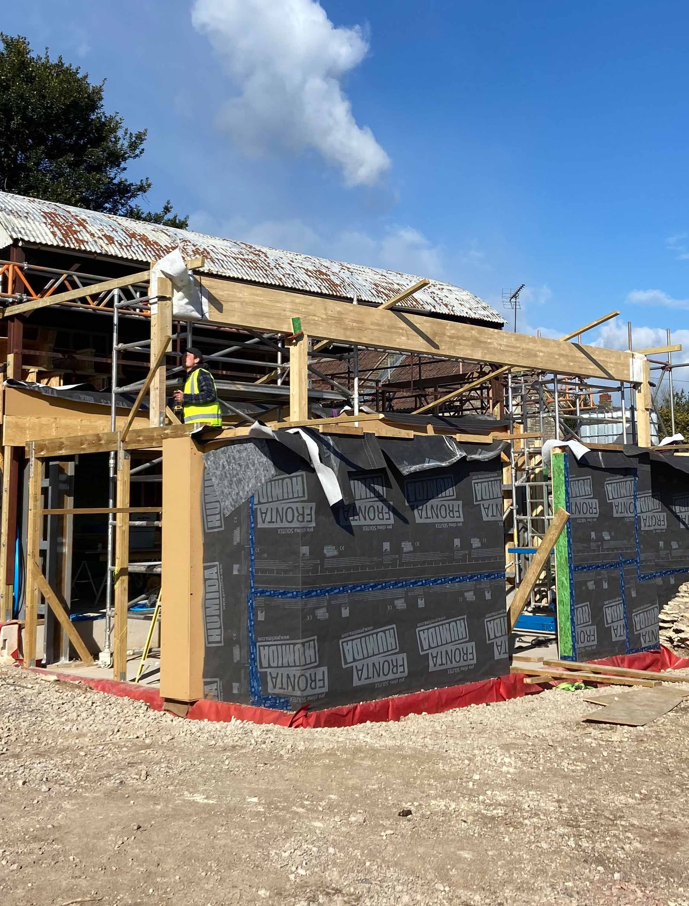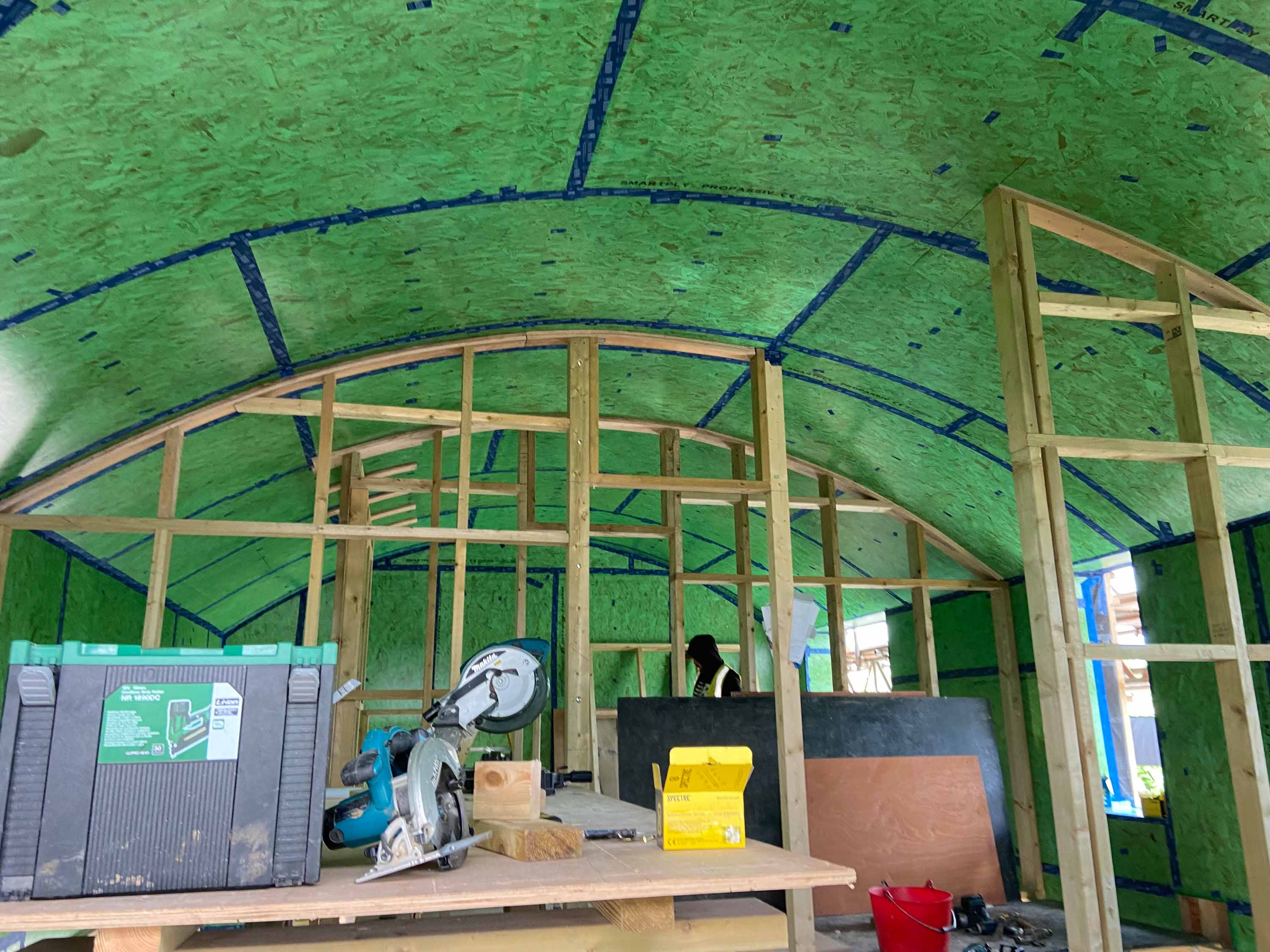 The shape of the barrel-vaulted Dutch barn roof was reflected in the airtight layer, built with Smartply airtight boards