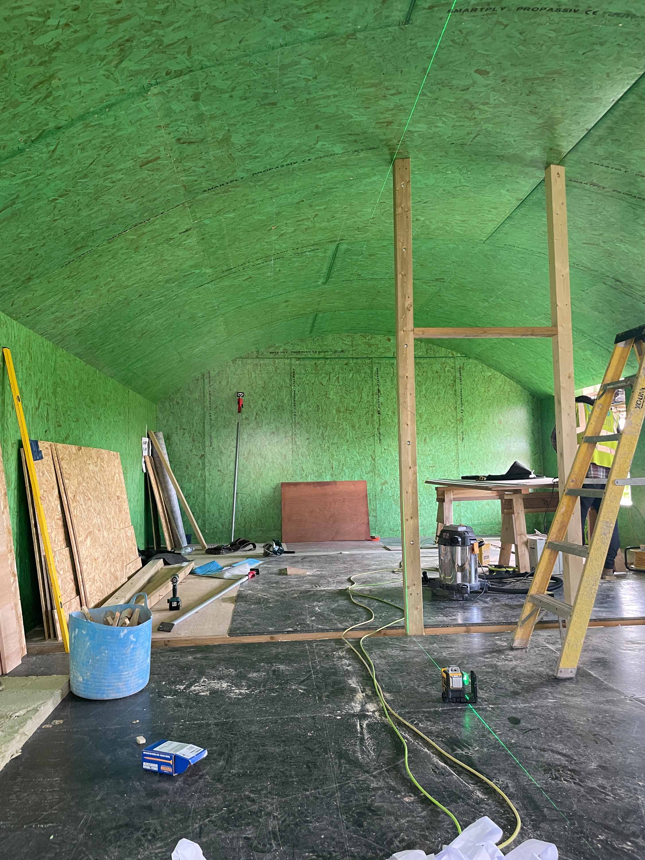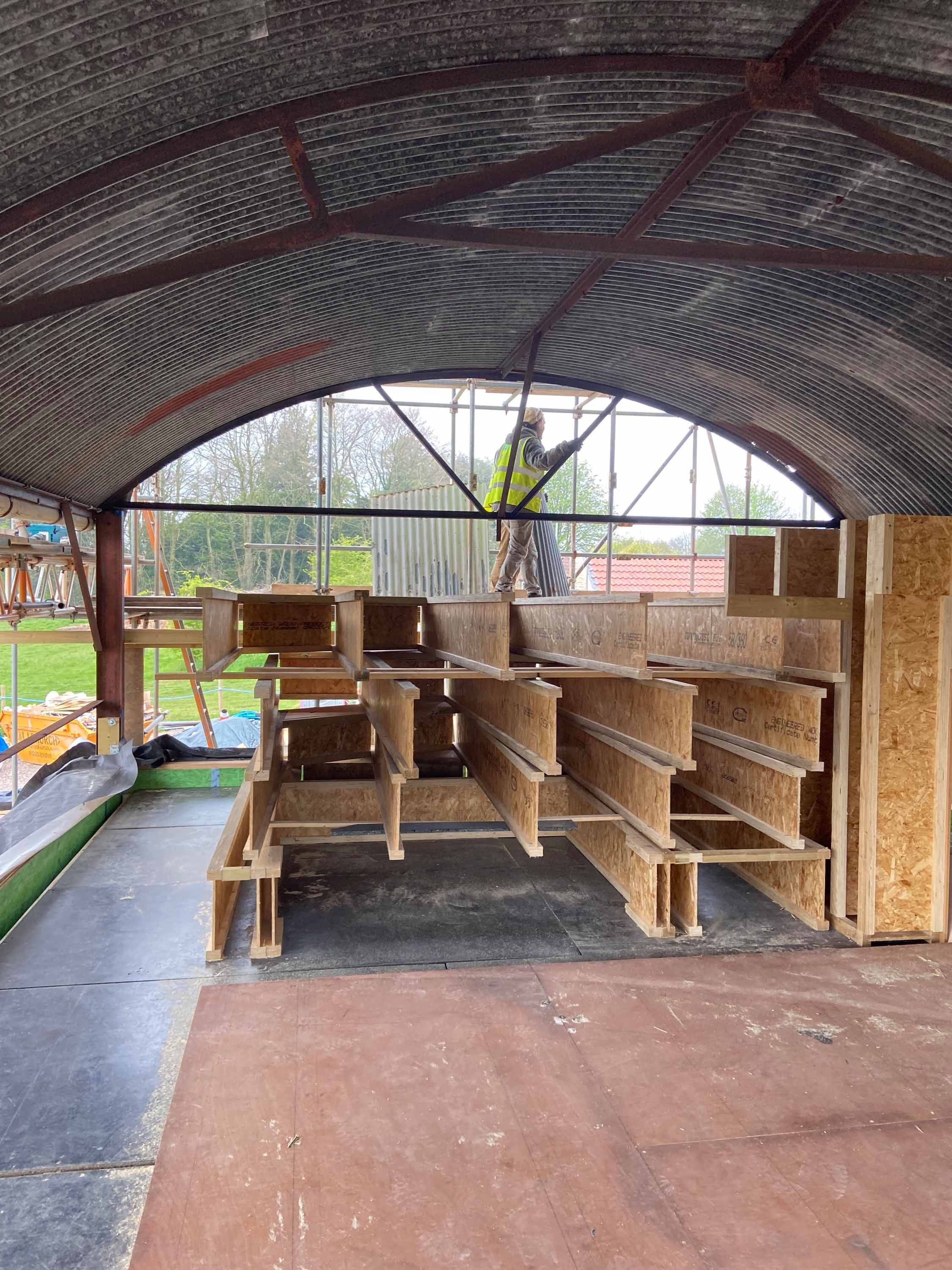 As a result, instead of simply building an engineered stud wall, Arbor worked out, onsite, how to, for example, build inside the steel frame of the Dutch barn.