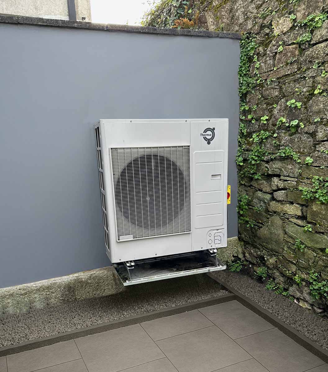The outdoor unit of the Thermia Itec Eco heat pump, installed in 2023