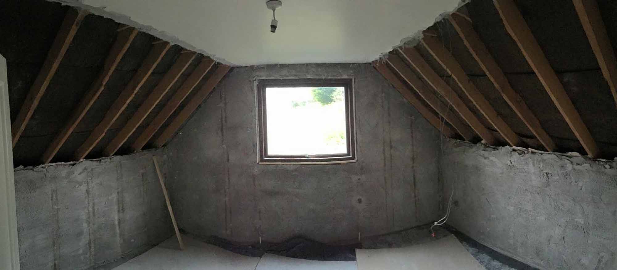 In 2015 the couple removed the timber latting or plasterboard from the pitched roof, to insulate and airtighten the roof;