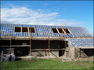 There were two lean-tos attached to the building, one which was in stone and ideal for a plant room, and the other in 100mm blockwork with a corrugated iron roof which had been built as a pump-house for the milking parlour – this one became an en-suite (with a lot of insulation!) for the main bedroom.