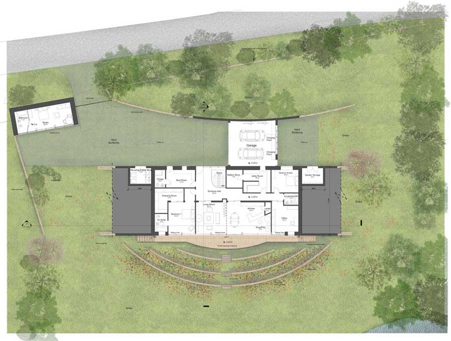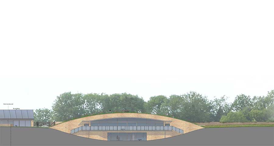 The couple’s dream was for a highly sustainable family home which met the passive house standard and level six of the Code for Sustainable Homes. They wanted to use local materials in a contemporary design and ultimately settled on a partially earth sheltered solution which derived its form from the prehistoric long barrows – earth mound monuments dating to the early Neolithic period – which are characteristic of the area. Despite careful consultation with the local community and 40 letters of support from their neighbours, the project was recommended for refusal by the planning authority. The planning committee, however, voted 11 in favour with just 2 abstentions and no votes against. So against all the odds, this innovative and exciting project received planning consent on 18 February 2014. It is now progressing to detailed design, with a view to starting on site before the end of the year.