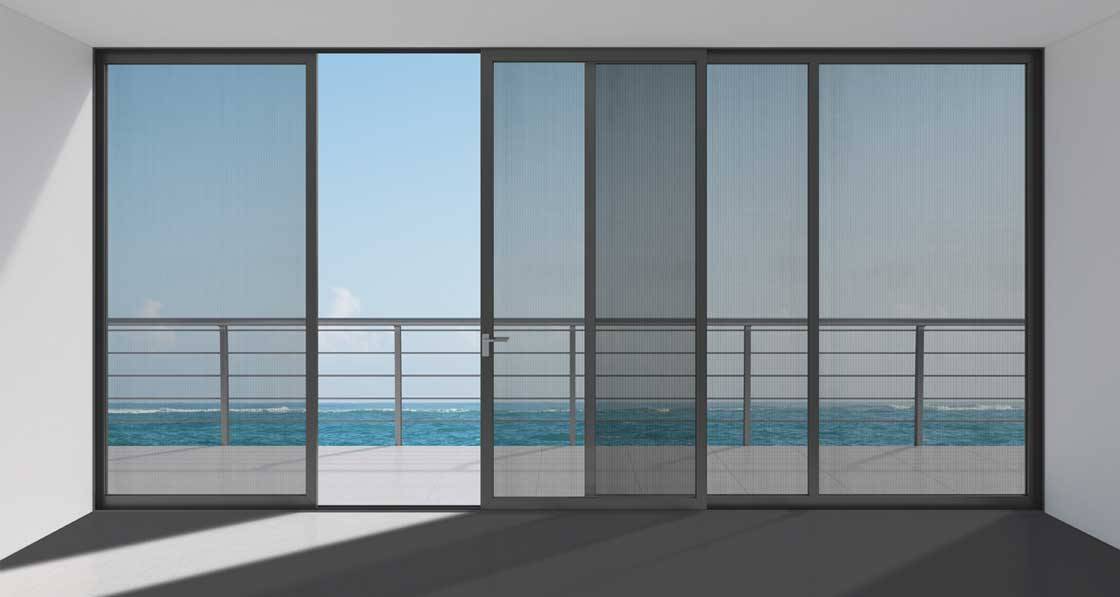 Smartlouvre’s MicroLouvre product, designed as a solar shading window screen, consists of a fine bronze allow mesh, comprising 700 tiny ‘bris-soleil’ fins per metre of fabric, measuring only 1.5 mm in depth. It is installed on a frame external to any windows, allowing heat to accumulate on the surface of the metal and then dissipate to the outside before it reaches the window. The heat is blocked before it hits the glass, by a metal fabric, with micro fine louvres woven in to dissipate the sun’s heat and energy but not block natural daylight, natural ventilation or vision out.